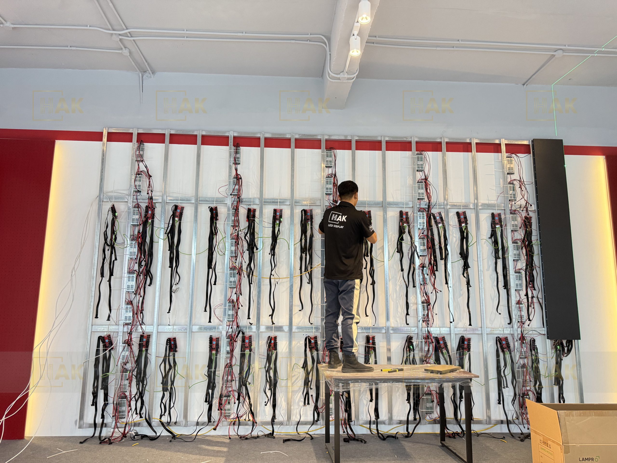 Sau khi khảo sát thực tế không gian phòng họp, đội ngũ HAK LED DISPLAY đã đưa ra phương án thiết kế tối ưu tỷ lệ hiển thị – ánh sáng – vị trí lắp đặt, giúp người ngồi ở mọi góc đều quan sát rõ nét.