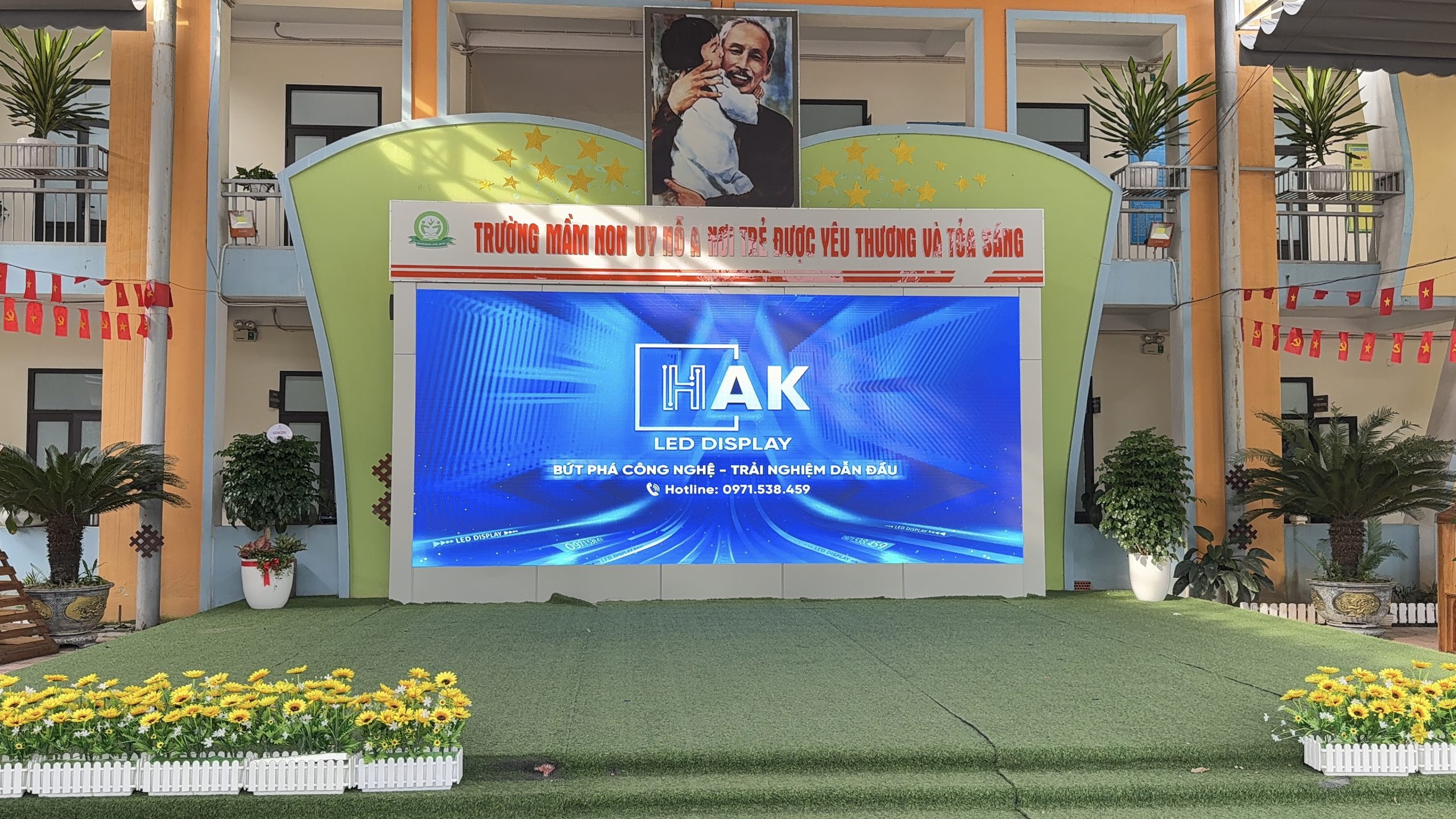 Tọa lạc tại thôn Đản Dị, xã Đông Anh, thành phố Hà Nội, Trường Tiểu học Uy Nỗ A là một trong những ngôi trường tiên phong trong việc ứng dụng công nghệ LED vào giảng dạy và tổ chức sự kiện. Với mong muốn mang lại hình ảnh trực quan, sinh động cho học sinh, nhà trường đã lựa chọn HAK LED DISPLAY là đơn vị thiết kế và thi công trọn gói hệ thống màn hình LED phục vụ cả phòng họp và sân khấu trung tâm.